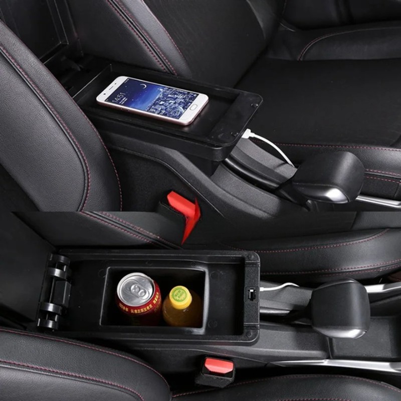 Elegancki skórzany przesuwany podłokietnik z USB i pojemnikiem na drobiazgi do Peugeot 2008, wykonany z wysokiej jakości materiałów, zwiększa komfort i chroni wnętrze pojazdu. Pełny opis