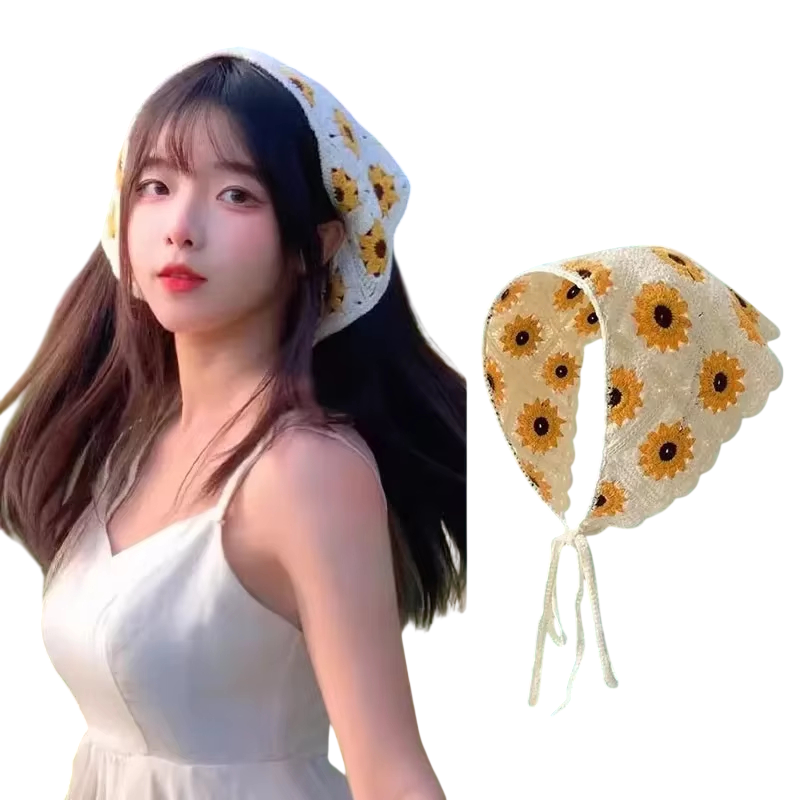 Strona główna Strona główna Odzież i akcesoria Odzież damska Akcesoria damskie Szale i chusty damskie Słonecznikowy ręcznie robiony trójkątny szalik Wiosenny letni szalik do włosów dla kobiet Lekka urocza nakrycie głowy na podróż
