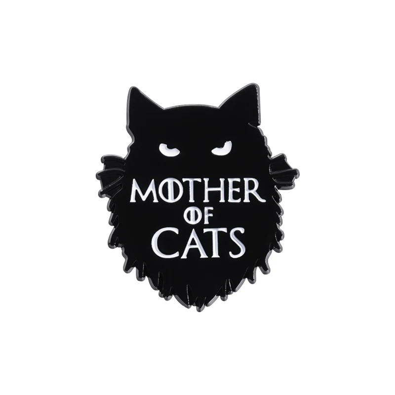 Smaltowany pin kot z napisem Mother of Cats około 2,8 × 2,5 cm czarny odznak zwierzęcy broszka na klapę plecak odzież