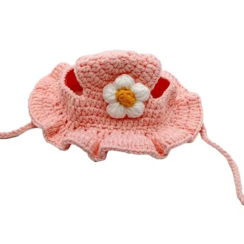Ten stylowy szydełkowany kapelusz z kwiatową ozdobą jest zaprojektowany dla kotów i innych zwierząt domowych o wadze do 7,5 kg. Jest idealny na uroczystości, do zdjęć lub jako zabawny dodatek modowy do codziennego noszenia.