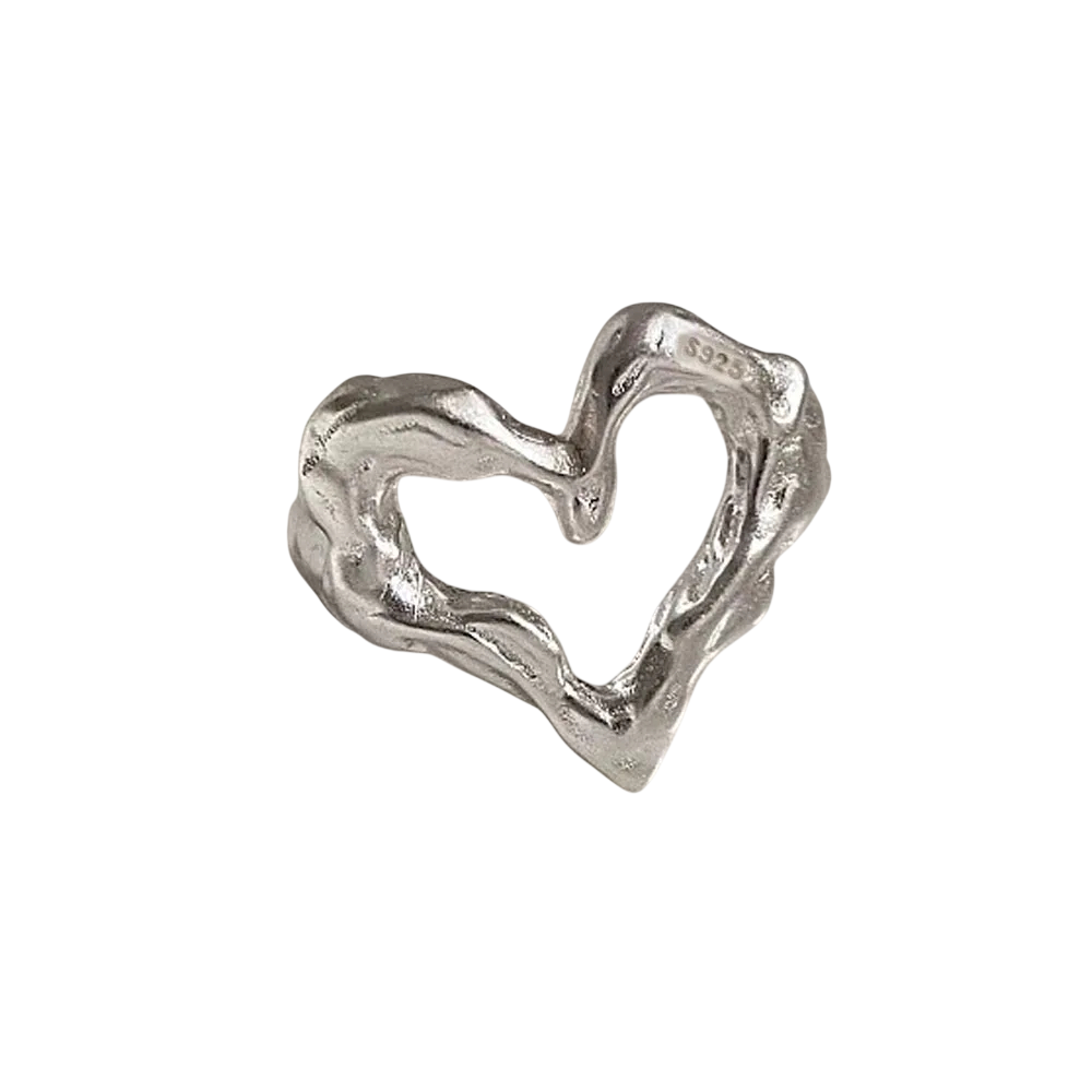 Srebrny damski pierścionek 925 Regulowana wielkość Abstrakcyjny kształt serca Delikatna elegancka biżuteria na co dzień i na uroczysty strój