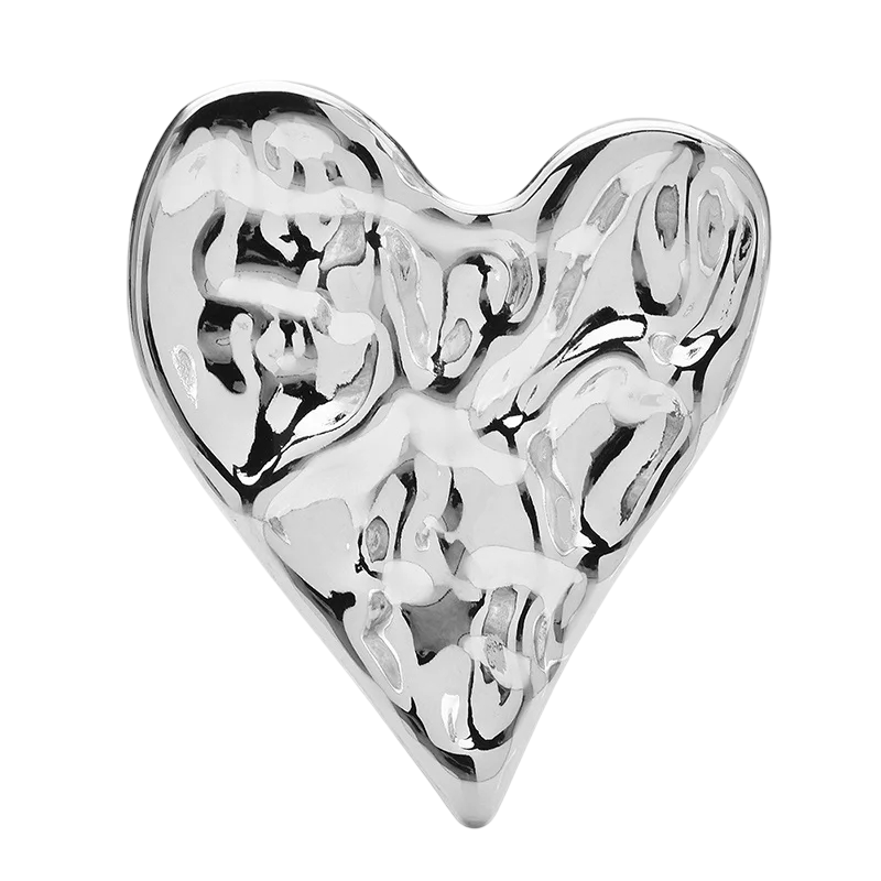 Stalowa broszka w kształcie serca z błyszczącą powierzchnią. Elegancki dodatek do płaszcza, marynarki lub klapy do codziennego noszenia. Pełny opis