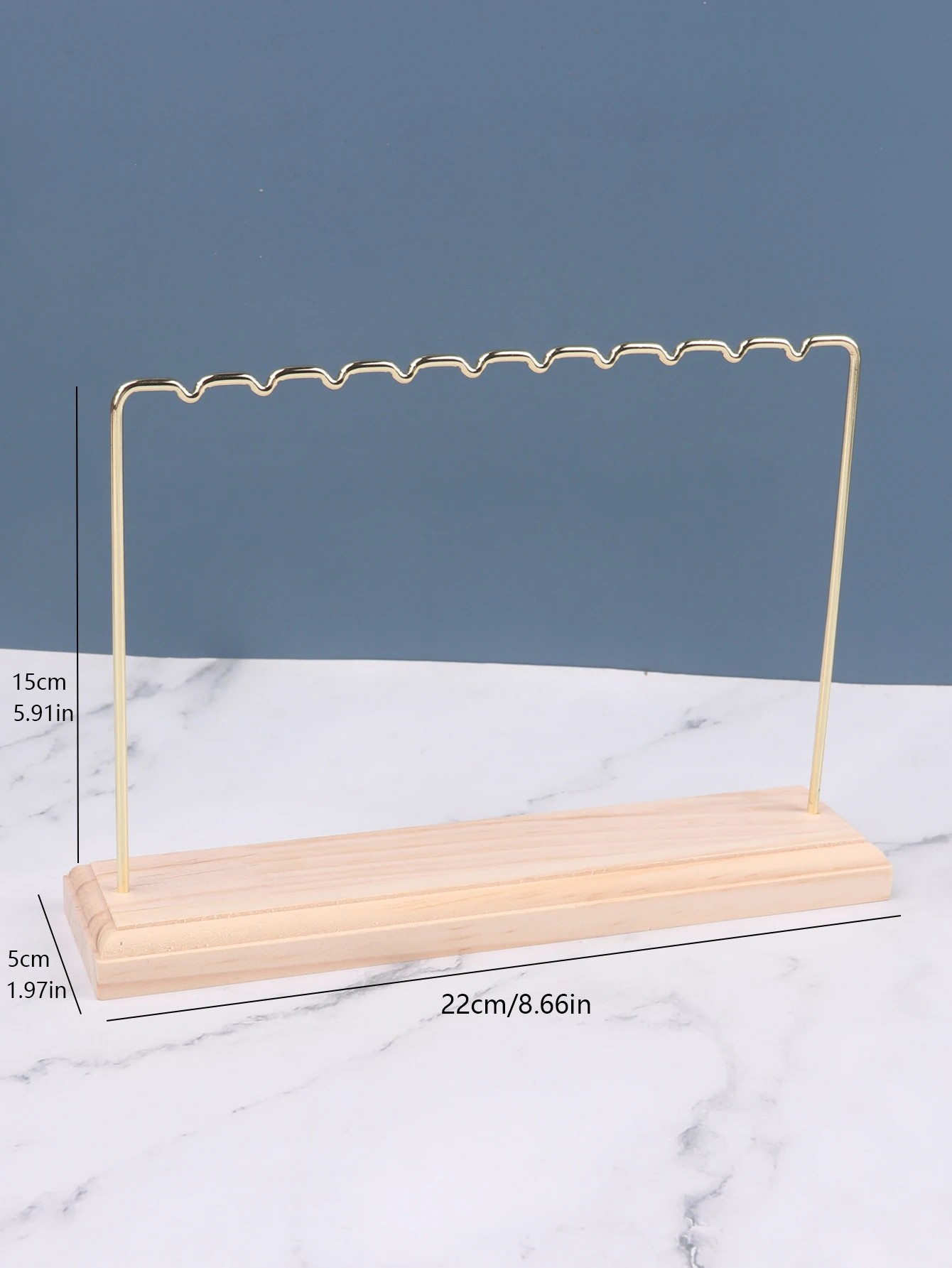 Strona główna Strona główna Akcesoria i dodatki do domu Dekoracje i dodatki do domu Inne dekoracje i akcesoria Stojak na kolczyki z drewnianą podstawą 22 × 15 × 5 cm metalowy wieszak na biżuterię z wycięciami stacjonarny organizer do wyeksponowania kolczyków