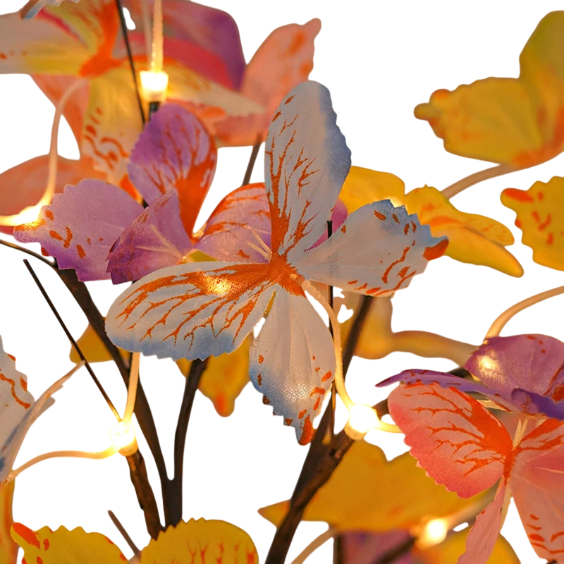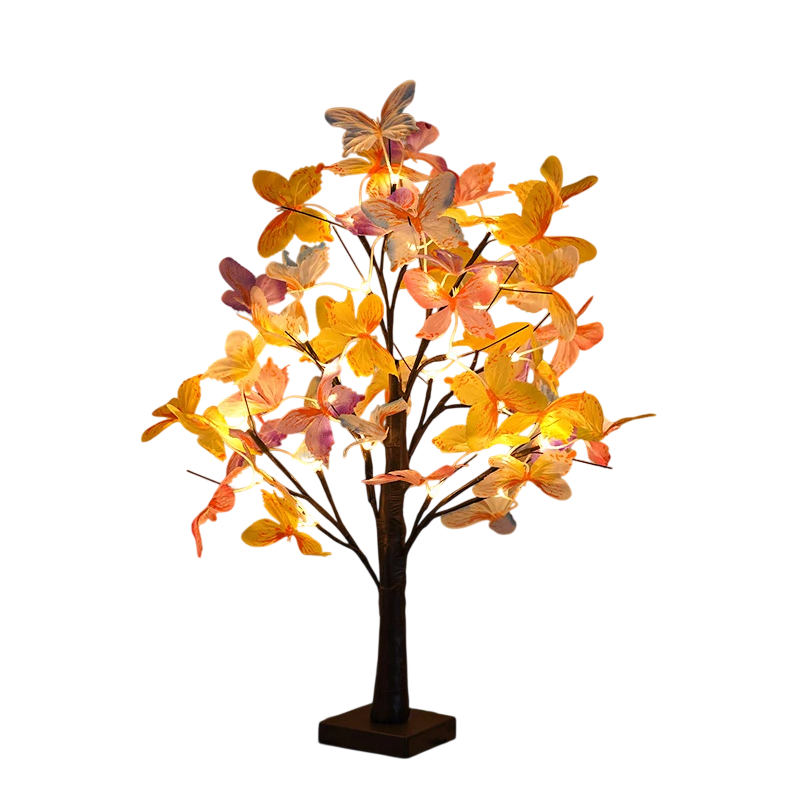 • Stolowe światło w kształcie drzewa z dekoracyjnymi motylami