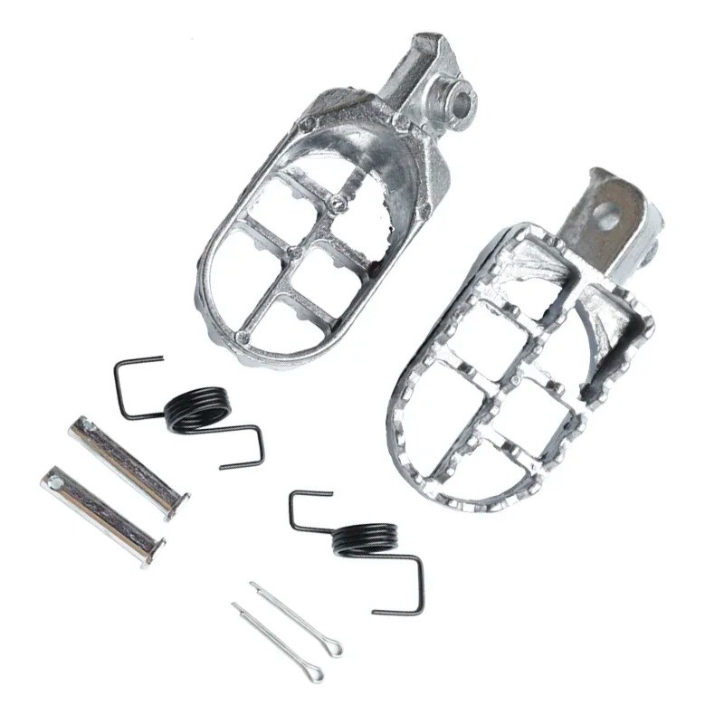 Ten zestaw stopek stanowi praktyczne rozwiązanie przy wymianie zużytych lub uszkodzonych oryginalnych części. Dzięki precyzyjnie określonym wymiarom i kompatybilności jest odpowiedni dla wymienionych modeli bez konieczności modyfikacji. Stalowa konstrukcja zapewnia mocne wsparcie podczas jazdy. Pełny zestaw montażowy upraszcza instalację. Produkt przeznaczony jest dla użytkowników, którzy szukają prostego i funkcjonalnego zamiennika dla swojego motocykla.