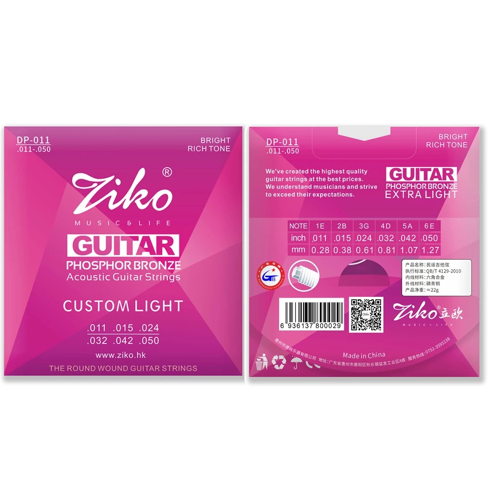 Struny do akustycznej gitary DP-011 Stal węglowa z sześciokątnym rdzeniem Stop fosforowego brązu Czysty ton Długa żywotność Stabilne strojenie