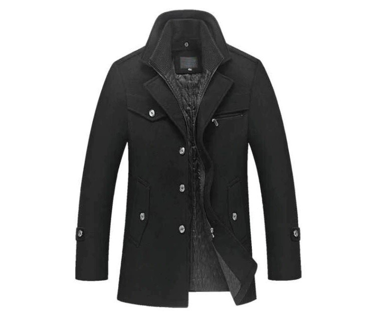 Ta męska płaszcz w stylu płaszcza jest jednocześnie modna i elegancka.