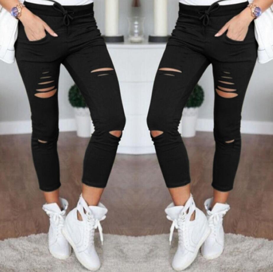 Stylowe damskie spodnie z dziurami J828
