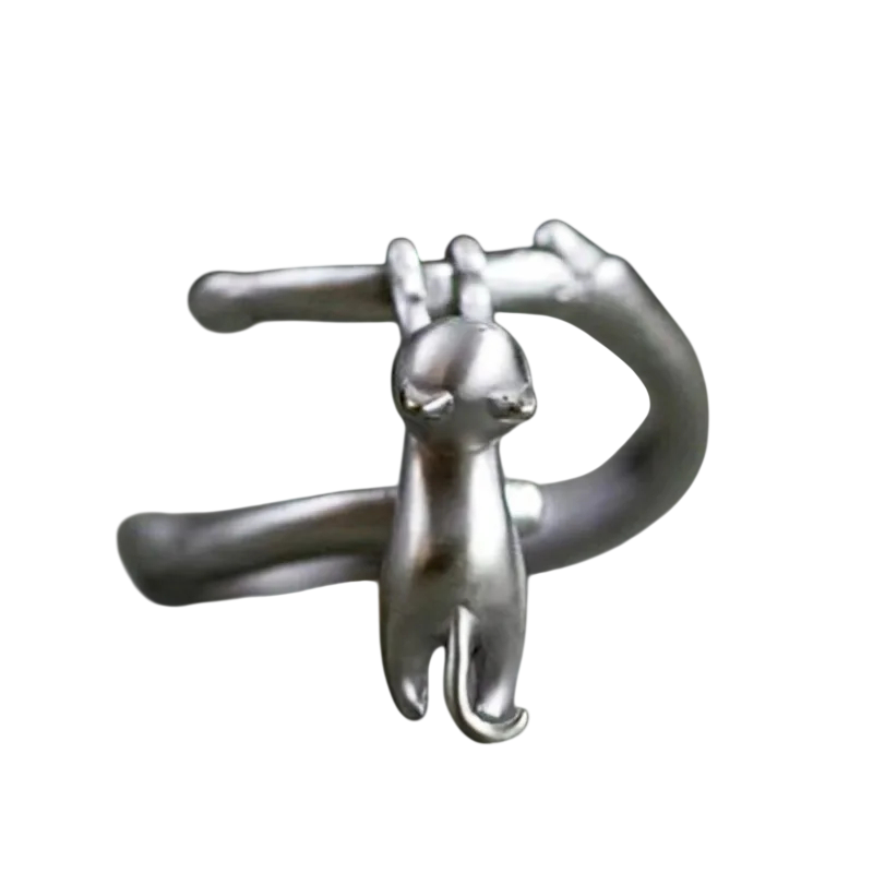 Odkryj oryginalny dodatek, który doskonale wyrazi Twoją osobowość i miłość do kotów. Ten elegancki pierścień przyciąga uwagę starannie wykonanym motywem kota zawieszonego na spirali, który wygląda delikatnie i jednocześnie stylowo. Dzięki nowoczesnemu otwartemu wykonaniu pierścień łatwo dopasowuje się do rozmiaru palca i oferuje maksymalny komfort noszenia. Biżuteria jest odpowiednia zarówno do codziennego stroju, jak i jako wyrazisty dodatek na specjalne okazje. Minimalistyczny, ale jednocześnie zabawny design doceni każda miłośniczka zwierzęcych motywów.