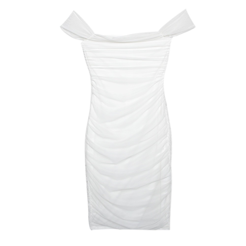 Elegancka damska sukienka koktajlowa z opadającymi ramionami.