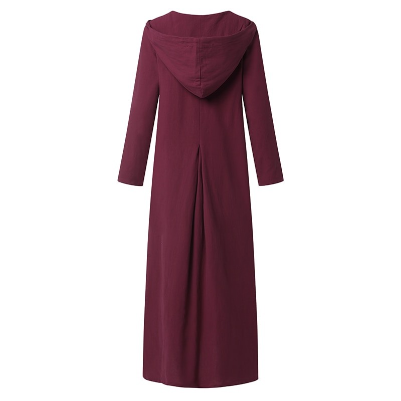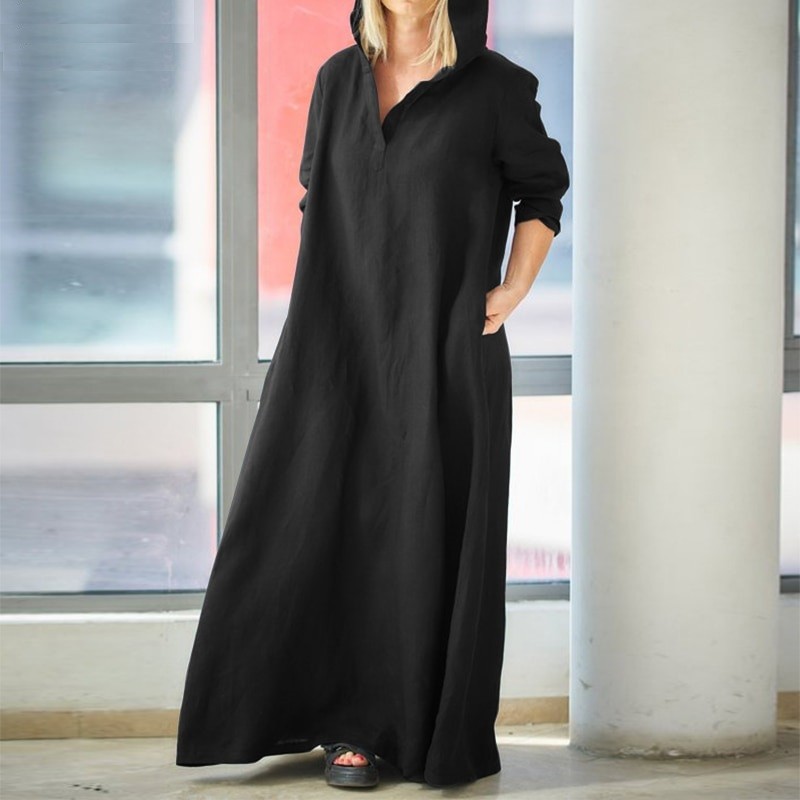 Klasczny dekolt w kształcie litery V i długość maxi.