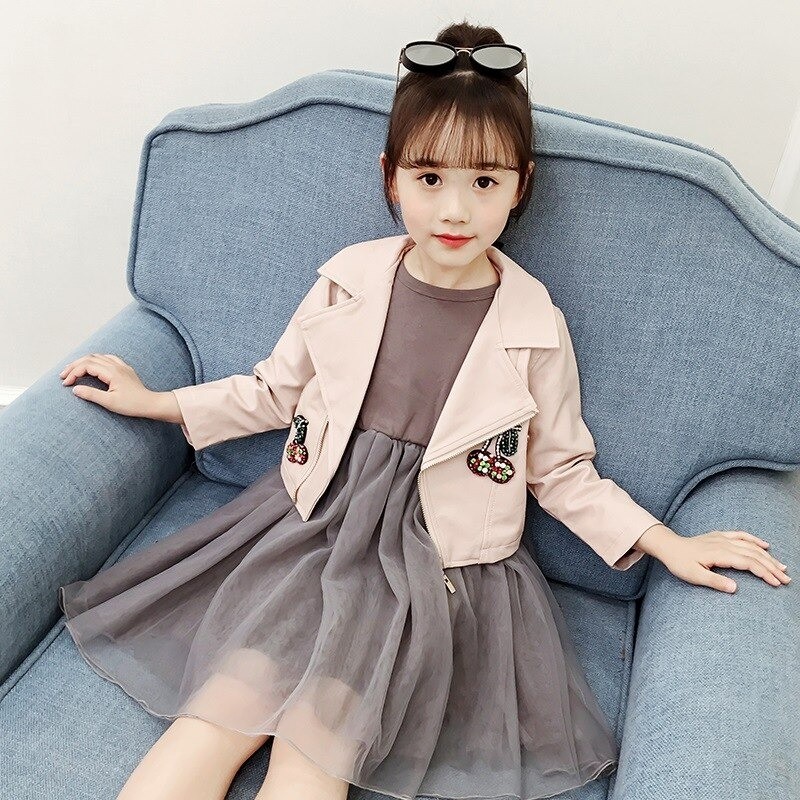 Sukienki dziewczęca i skórzana kurtka