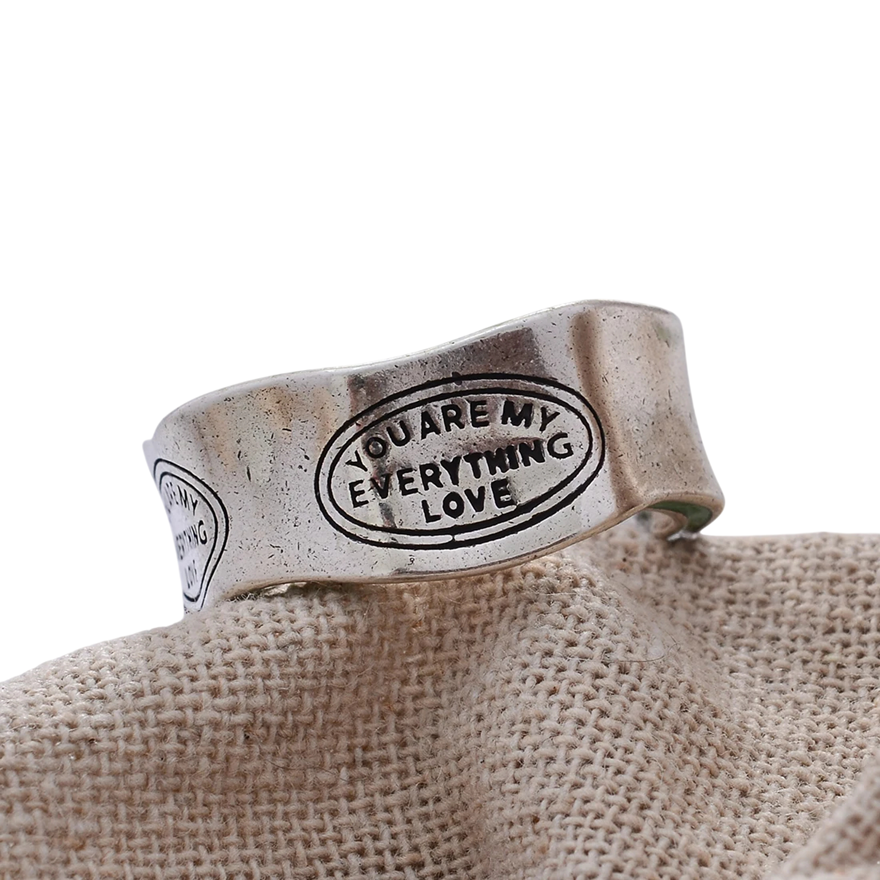 Szerokość 6 mm Otwarty damski pierścionek Nieregularny kształt fali Zielono-srebrny pierścionek z żywicy z napisem YOU ARE MY EVERYTHING LOVE