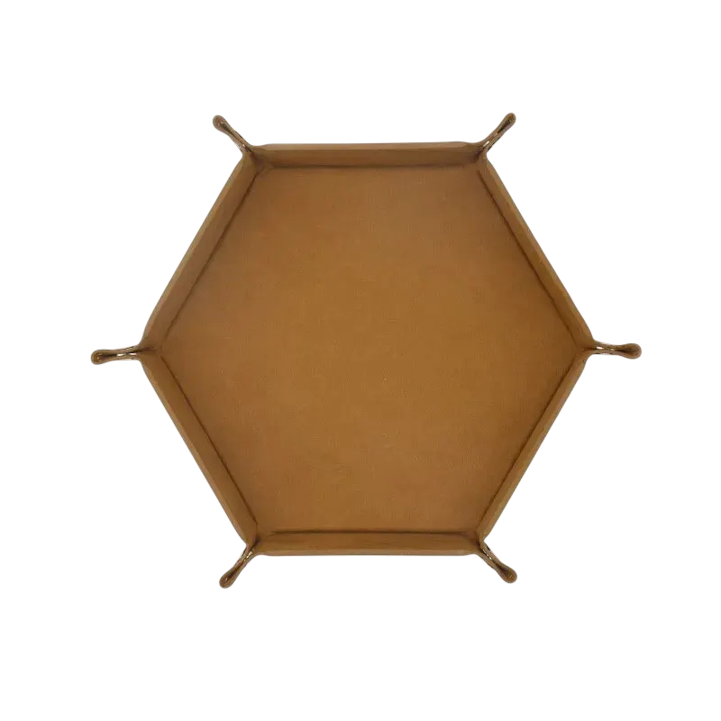 Strona główna Strona główna Akcesoria i dodatki do domu Przechowywanie i organizacja Pojemniki i organizery Sześciokątny rozkładany tac na kości 27 x 24,5 cm Sztuczna skóra Przechowywanie akcesoriów do gier planszowych i RPG