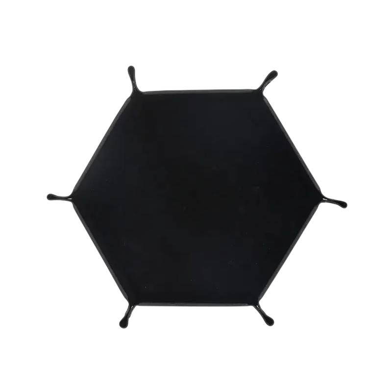 Sześciokątny tac do gier jest praktycznym dodatkiem dla wszystkich miłośników gier planszowych i RPG. Służy jako bezpieczna przestrzeń do rzucania kośćmi oraz przejrzystego przechowywania figurek, żetonów lub drobnych akcesoriów do gier. Dzięki rozkładanej konstrukcji można go łatwo złożyć i przenieść, nie zajmując zbędnego miejsca. Powierzchnia z sztucznej skóry wygląda elegancko i jednocześnie chroni stół do gier przed uszkodzeniem. Tac został zaprojektowany w celu poprawy komfortu podczas gry i utrzymania przejrzystości na planszy.