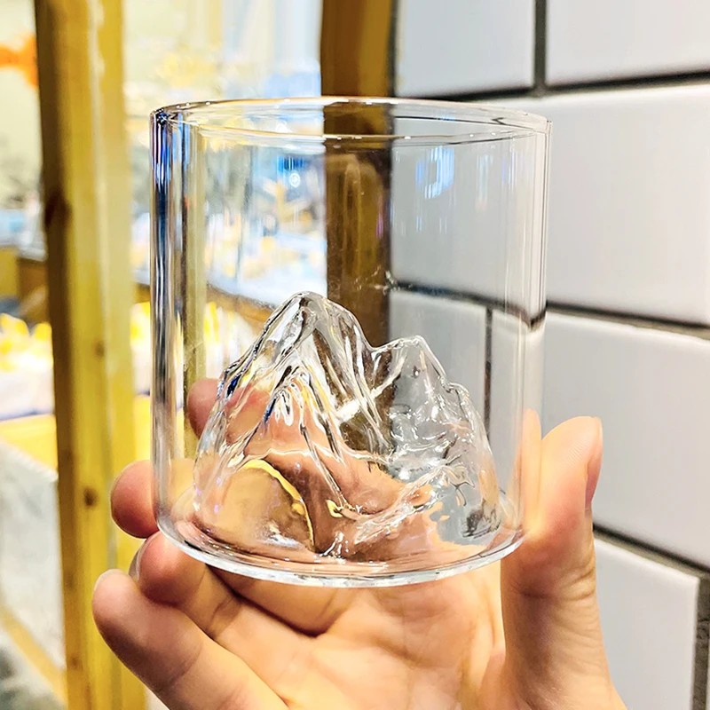 Taka szklanka do whisky o pojemności 200 ml ma prosty cylindryczny kształt uzupełniony wyraźnym detalem na dnie. Wewnątrz szklanki znajduje się relief góry, który jest widoczny przy nalewaniu napoju.