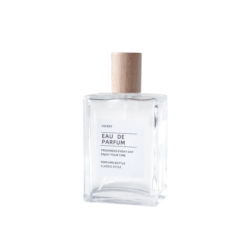 Szklany flakon na perfumy kwadratowy kształt 30 ml przezroczyste szkło z drewnianą zakrętką buteleczka na perfumy z pipetą i lejekiem