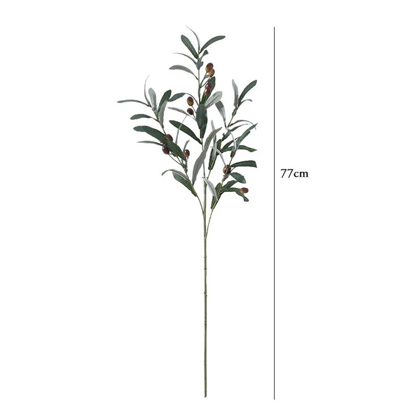 Sztuczna gałąź z oliwkowozielonymi liśćmi jest eleganckim i praktycznym dodatkiem do każdego wnętrza. Realistyczne wykonanie liści i owoców nadaje każdej dekoracji naturalny wygląd, podczas gdy odporny materiał zapewnia długą żywotność bez potrzeby pielęgnacji. Dzięki swojej uniwersalności doskonale nadaje się jako ozdoba do wazonów, świeczników, wieńców czy kompozycji weselnych.