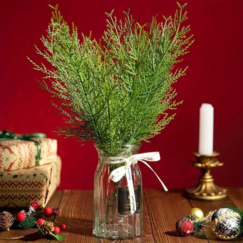 Strona główna Strona główna Akcesoria i dodatki do domu Dekoracje i dodatki do domu Sztuczne kwiaty Sztuczne kwiaty na łodydze Sztuczne gałązki sosnowe 24 szt. 36 cm szerokości 12,5 cm Dekoracyjne igły do aranżacji świątecznych wieńców i dekoracji