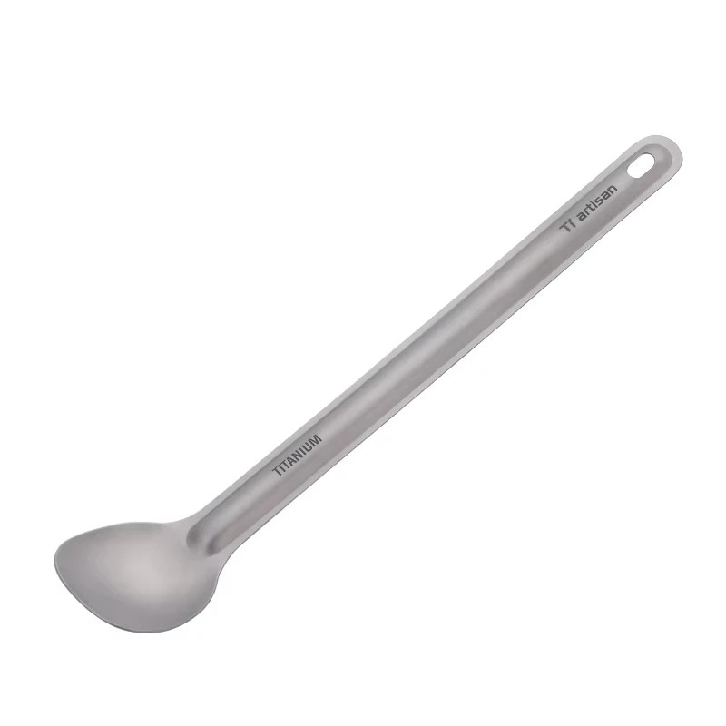 Titanowa łyżka z długą rączką to praktyczny sztućce przeznaczony do użytku na świeżym powietrzu podczas kempingu, turystyki lub podróżowania. Dzięki prostemu wykonaniu może być odpowiednią częścią wyposażenia outdoorowego. Kompaktowa konstrukcja umożliwia łatwe przenoszenie w plecaku, torbie podróżnej lub innym ekwipunku turystycznym.