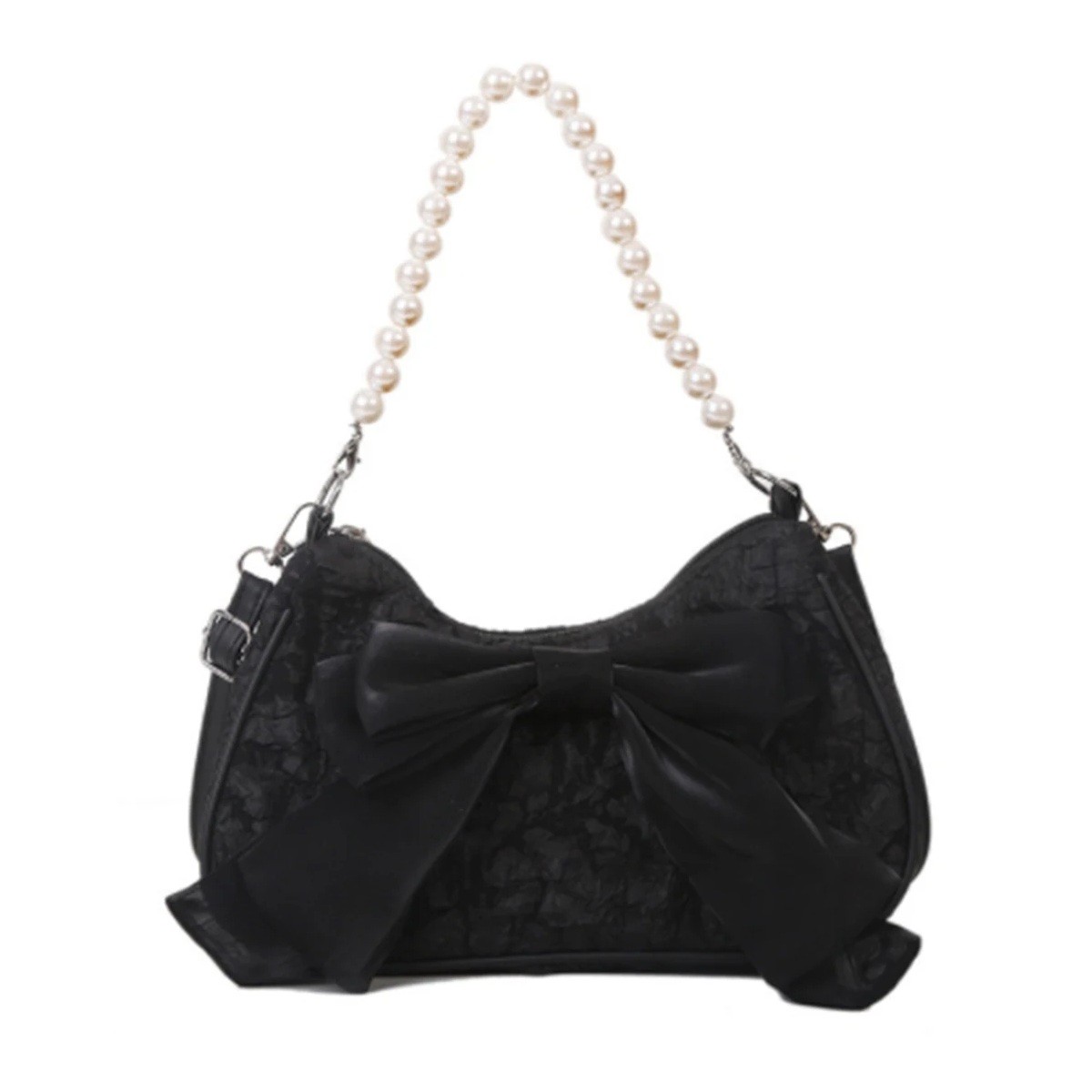 Torebka damska z kokardą 23 x 8 x 15 cm Bawełna i poliester Perłowy uchwyt Elegancka torebka na rękę