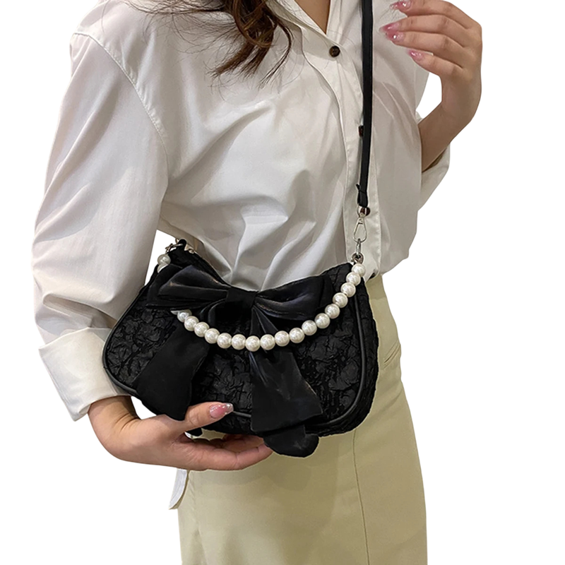 Elegancka torebka z delikatnymi detalami, perłowym uchwytem i kompaktowym rozmiarem, idealna na wydarzenia towarzyskie i stylowe wyjścia. Pełny opis