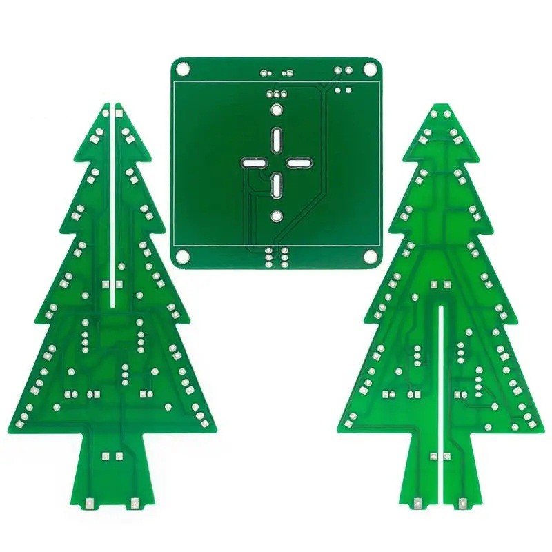 Trójwymiarowa elektroniczna choinka świąteczna to atrakcyjny moduł świetlny, który po złożeniu tworzy efektowną migającą dekorację. System oparty jest na podłączeniu z kolorowymi diodami LED, które zmieniają jasność i częstotliwość świecenia, co przypomina żywy efekt świetlny. Płytki drukowane są rozmieszczone w kształcie choinki i umożliwiają stabilną konstrukcję w trzech warstwach. Ta świetlna choinka jest idealna jako kreatywny dodatek do domu lub jako techniczna dekoracja na biurko.