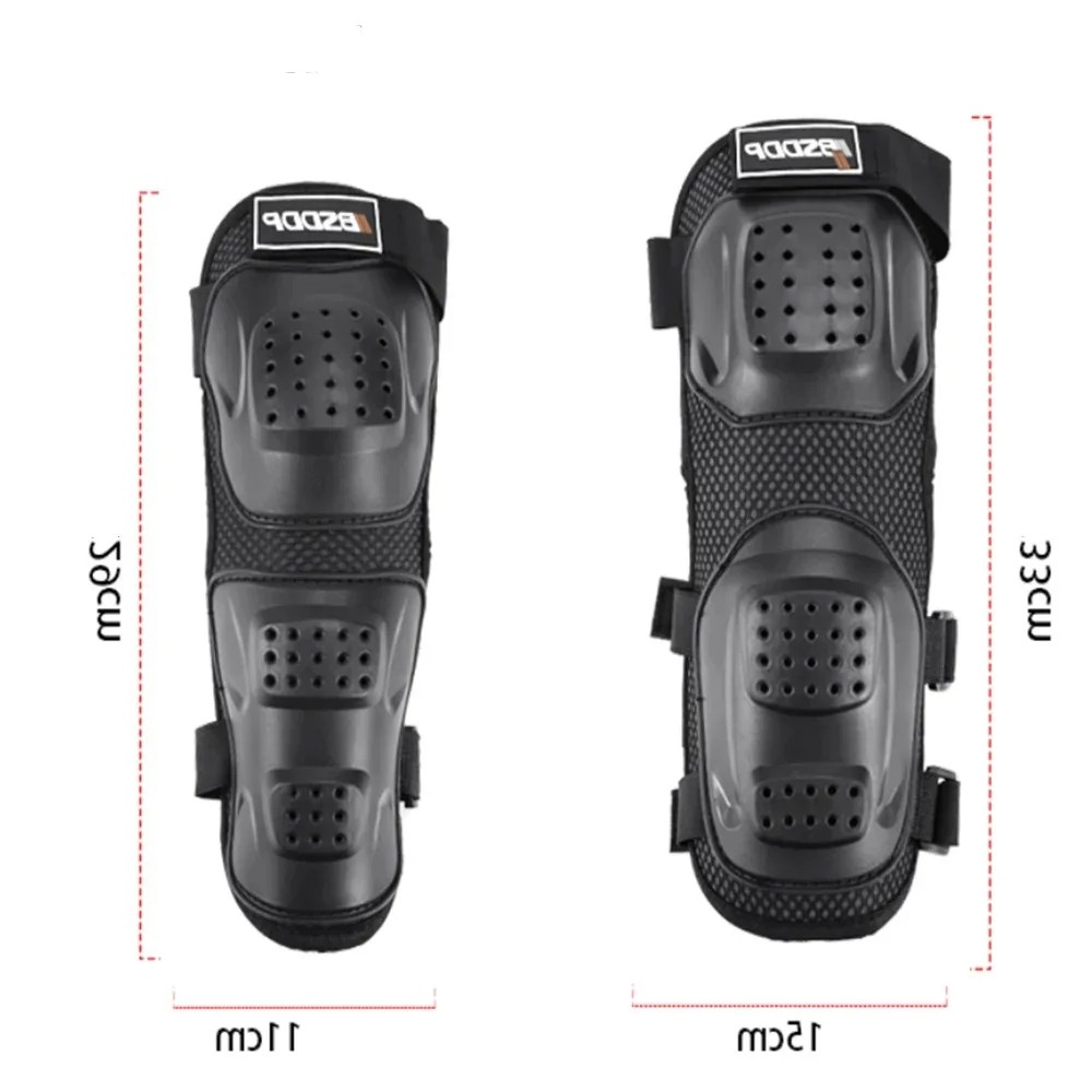Wytrzymałe ochraniacze kolan zapewniają niezawodną ochronę rzepki i kości piszczelowej podczas jazdy w terenie i w mieście. Twarda skorupa z wieloma otworami wentylacyjnymi zwiększa przepływ powietrza i zmniejsza pocenie podczas wysiłku. Wewnętrzna miękka wyściółka z pianki EVA dopasowuje się do nogi i rozkłada nacisk podczas upadku lub uderzenia. Dzięki regulowanym paskom na rzep ochraniacze stabilnie i wygodnie trzymają się nawet podczas dłuższej jazdy. Uniwersalne wykonanie jest odpowiednie do motocrossu, enduro, jazdy na rowerze, hulajnodze i rolkach inline.