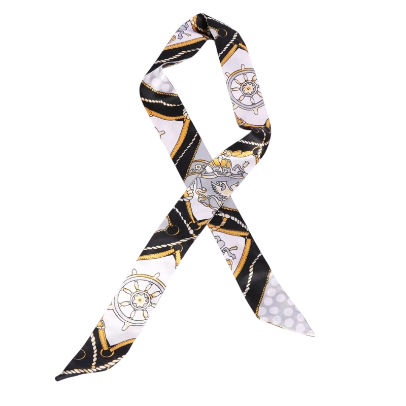 Lekki wąski szalik dla kobiet, odpowiedni do włosów, na głowę i jako dekoracja torebki. Elegancki i uniwersalny dodatek modowy. Pełny opis