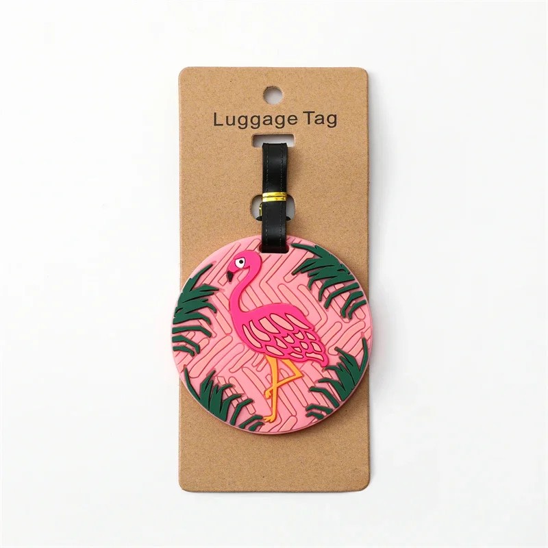 Visażka na bagaż podróżny z motywem flaminga 10,5 × 10,5 cm silikonowa różowo-zielona identyfikacyjna etykieta na walizkę lub torbę