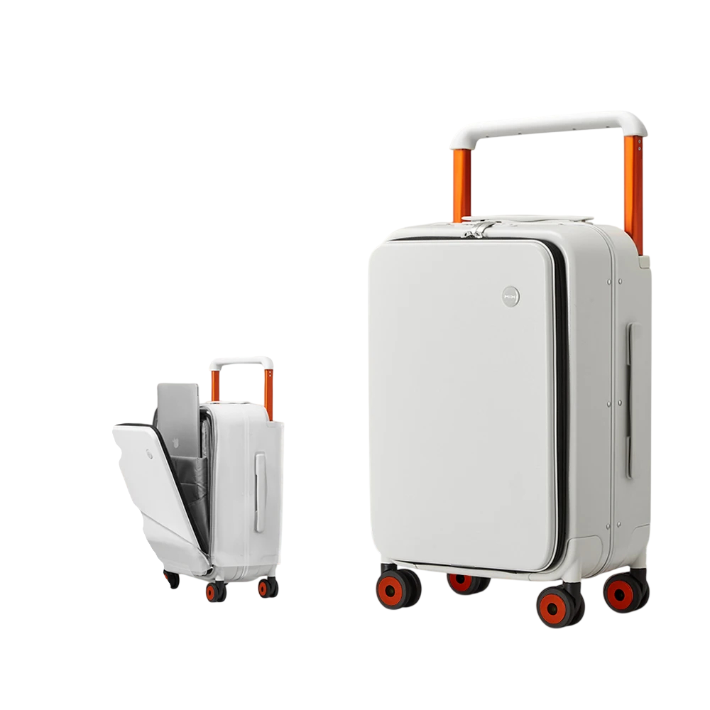 Konstrukcja walizki łączy aluminiową ramę i materiał poliwęglanowy (PC), co zapewnia wysoką wytrzymałość i odporność na uderzenia. Aluminiowa rama wzmacnia ogólną stabilność walizki i chroni jej zawartość podczas transportu, podczas gdy panele poliwęglanowe pomagają utrzymać niską wagę bagażu.