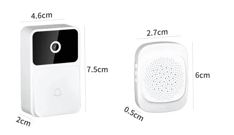 Wideodomofon WiFi 7,5 x 4,6 x 2 cm z funkcją nocnego widzenia, dwukierunkowym audio, zasilany akumulatorowo Wideodomofon WiFi to nowoczesne rozwiązanie zabezpieczające wejście do domu bez potrzeby okablowania. Umożliwia monitorowanie przestrzeni przed drzwiami w czasie rzeczywistym za pomocą aplikacji mobilnej. Po naciśnięciu dzwonka otrzymasz natychmiastowe powiadomienie na telefon i możesz zareagować z dowolnego miejsca. Dzięki kompaktowym wymiarom i bezprzewodowej konstrukcji instalacja jest szybka i elastyczna. Dzwonek jest odpowiedni do mieszkań, domów jednorodzinnych oraz biur. Urządzenie jest wyposażone w