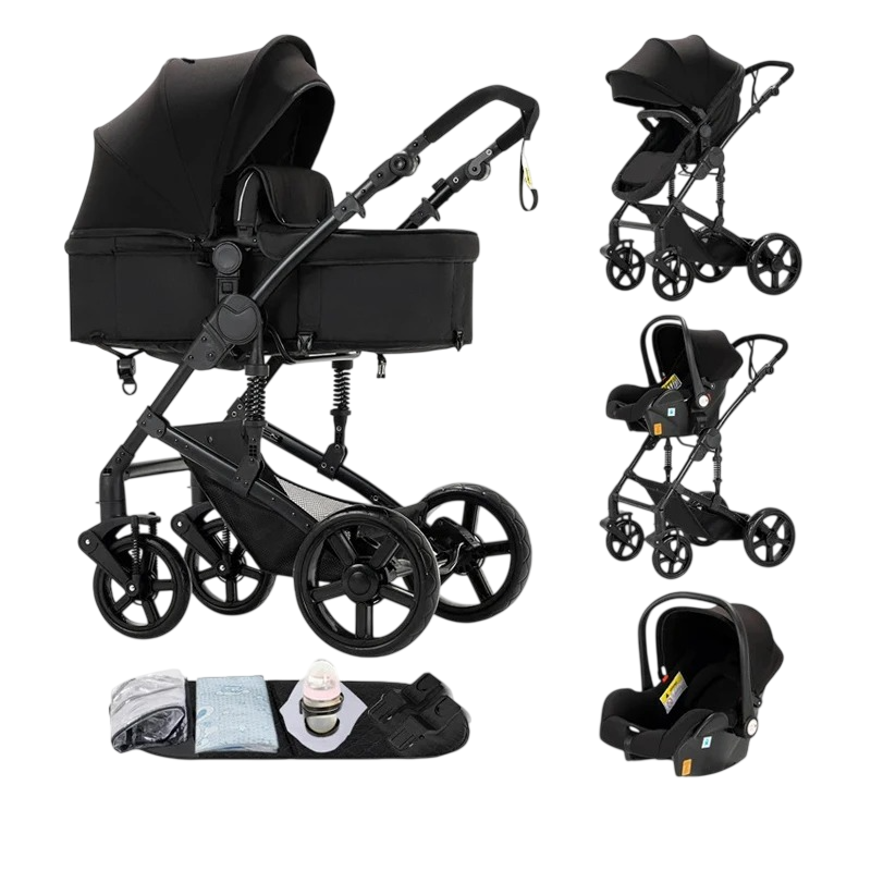• Wózek 3 w 1 – obejmuje kołyskę, siedzisko dla małych dzieci i fotelik samochodowy