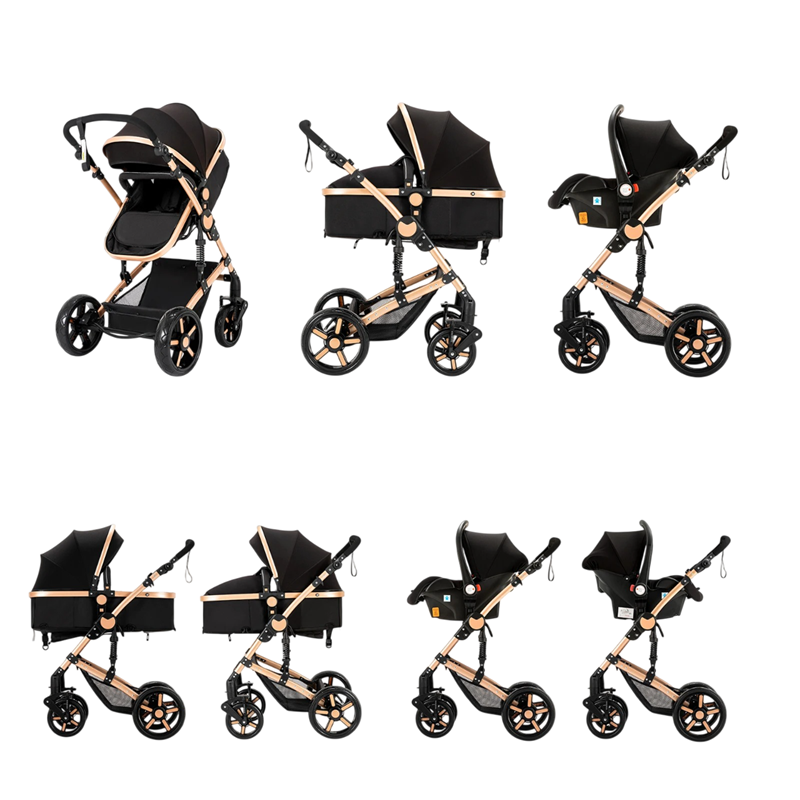 Wielofunkcyjny wózek dziecięcy 3w1 z fotelikiem samochodowym i kołyską, amortyzowana rama, bawełna, system kombinowany do codziennego użytku