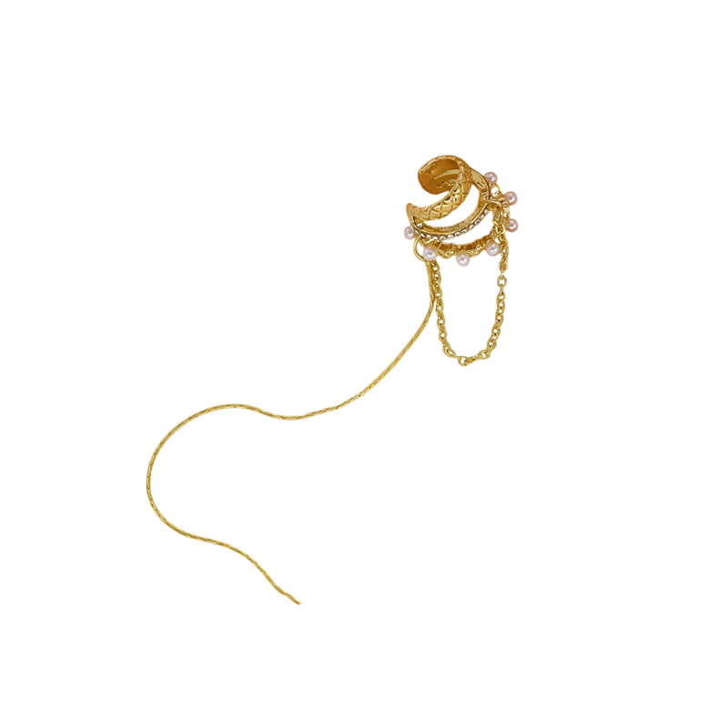 Wielowarstwowy łańcuszkowy kolczyk na chrząstkę ucha z perłami, punkowy i hip-hopowy wygląd, klipsy do codziennego noszenia, nowoczesny stylowy dodatek