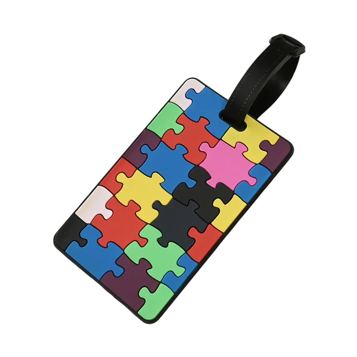Wizytówka na bagaż podróżny z wzorem puzzli 10,5×6,5 cm silikonowa etykieta identyfikacyjna na walizkę do oznaczania bagażu podczas podróży