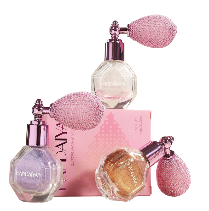 Strona główna Strona główna Zdrowie i uroda Makijaż twarzy Konturowanie, bronzery i rozjaśniacze Wodoodporny błyszczący rozświetlacz w sprayu 78 x 37 x 24 mm Spray do ciała, twarzy i włosów Delikatny blask kosmetyczny rozświetlający spray