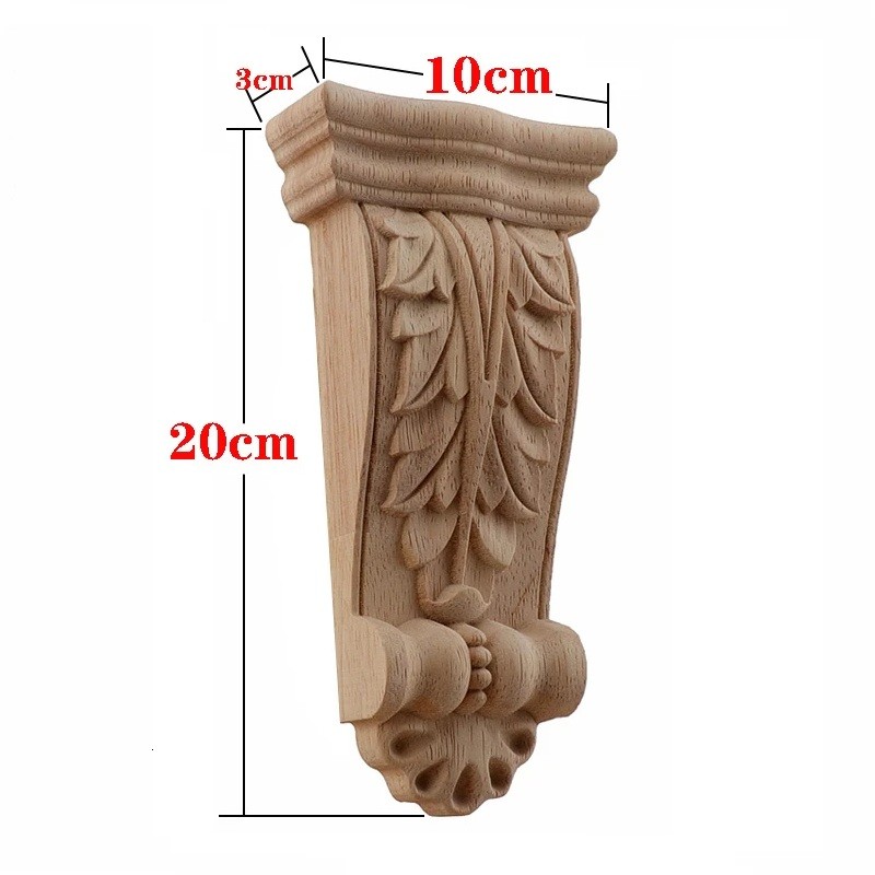 Wycinana drewniana konsola dekoracyjna z liściastym reliefem 20x10x3 cm z litego drewna naturalnego brązowego do mebli i wnętrz