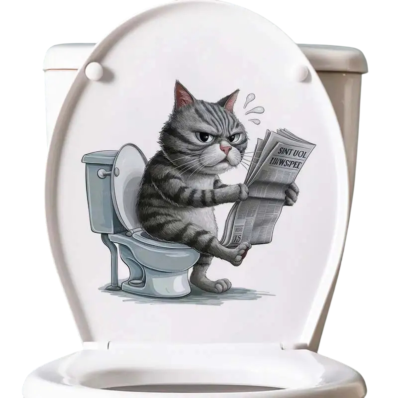 Naklejka na toaletę z motywem kota, 35 cm, wykonana z materiału PVC, wodoodporna i łatwa w aplikacji. Świetna dekoracja do WC i łazienki. Pełny opis
