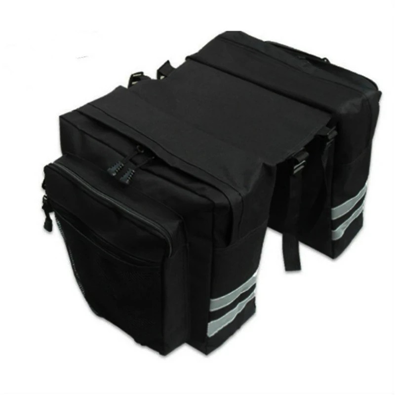 Wodoodporna zadnia torba rowerowa z nylonu 31,5 × 31,5 × 23 × 16 cm oferuje obustronną przestrzeń do przechowywania na bagażniku roweru. Pełny opis