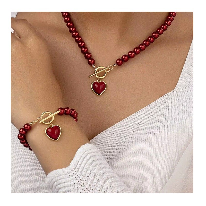 Strona główna Strona główna Biżuteria i zegarki Biżuteria damska i zegarki Damskie naszyjniki i łańcuchy Zapamiętywalny zestaw perłowy naszyjnik 44 cm i bransoletka 21 cm Elegancka biżuteria koralikowa dla dziewcząt Stal cynkowa