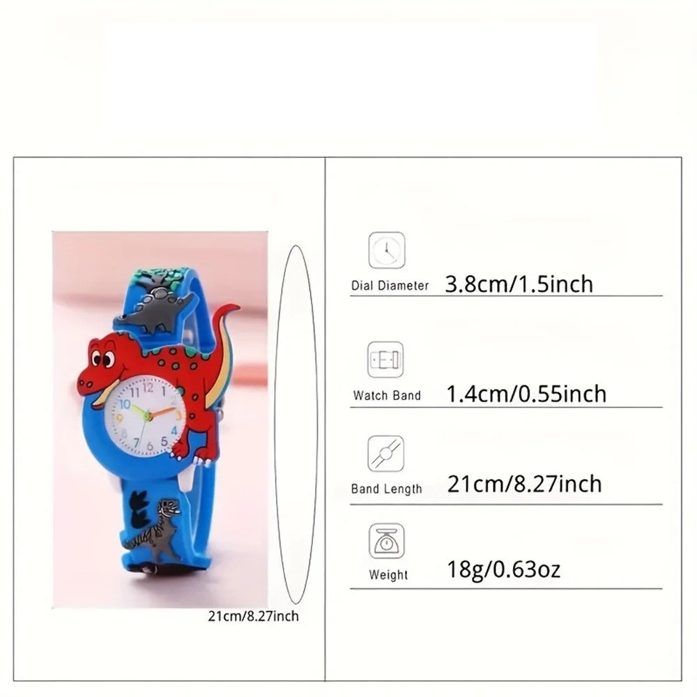 - Zawartość opakowania: 1× dziecięcy zegarek analogowy z dinozaurem 3D (kolor do wyboru)