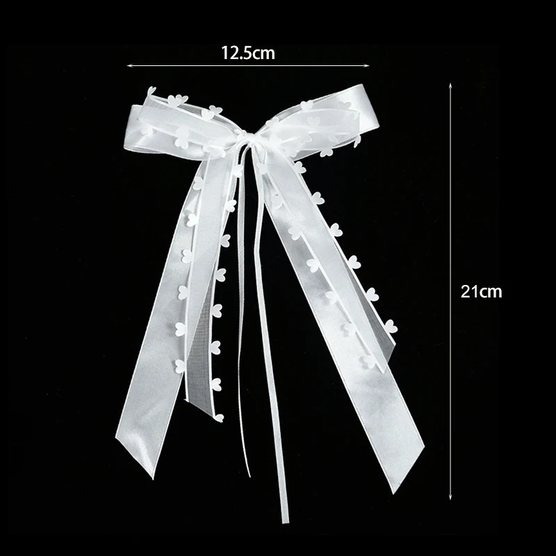 Eleganckie ślubne kokardki w białym kolorze nadadzą Twojej dekoracji subtelny i romantyczny wygląd. Każda wstążka wykonana jest z wysokiej jakości satynowego materiału z dekoracyjnym brzegiem w kształcie małych serduszek lub kwiatków, które podkreślają uroczystą atmosferę. Wymiary 21 × 12,5 cm są idealne do ozdabiania ślubnego samochodu, krzeseł, stołów lub pakowania prezentów.