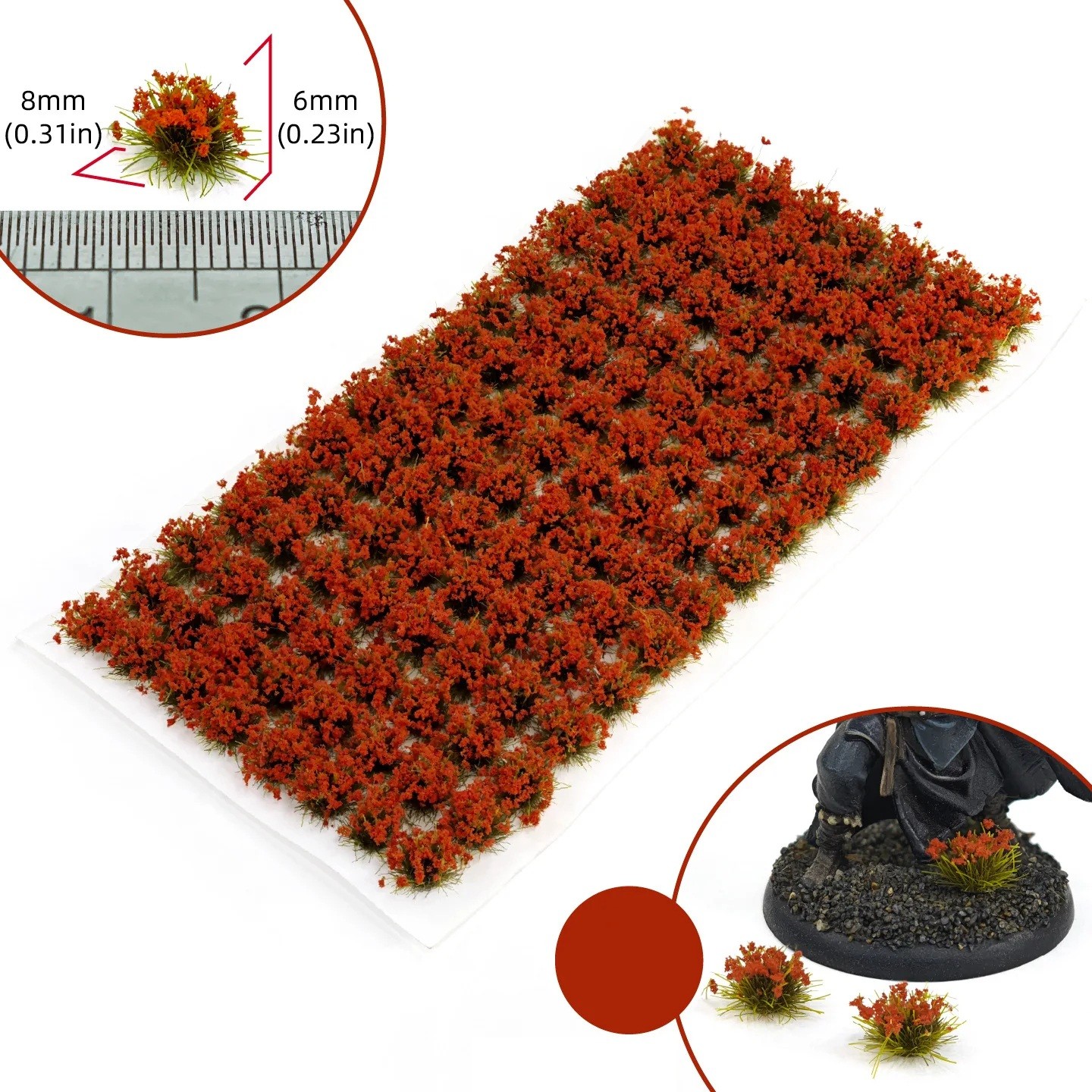 Te miniaturowe kępki trawy dodadzą scenie głębi, struktury i naturalnych detali. Umożliwiają tworzenie gęstszych trawiastych powierzchni oraz pojedynczych akcentów według potrzeb. Dzięki kompaktowym rozmiarom są idealne do precyzyjnej pracy i szczegółowego opracowania podłoża. Świetne rozwiązanie dla każdego, kto chce osiągnąć realistyczny wygląd naturalnego terenu. Praktyczne opakowanie ułatwia przechowywanie i manipulację. Kolor produktu może się nieznacznie różnić w zależności od ustawień monitora i warunków oświetleniowych. Mogą wystąpić drobne odchylenia w wymiarach w wyniku ręcznego pomiaru.