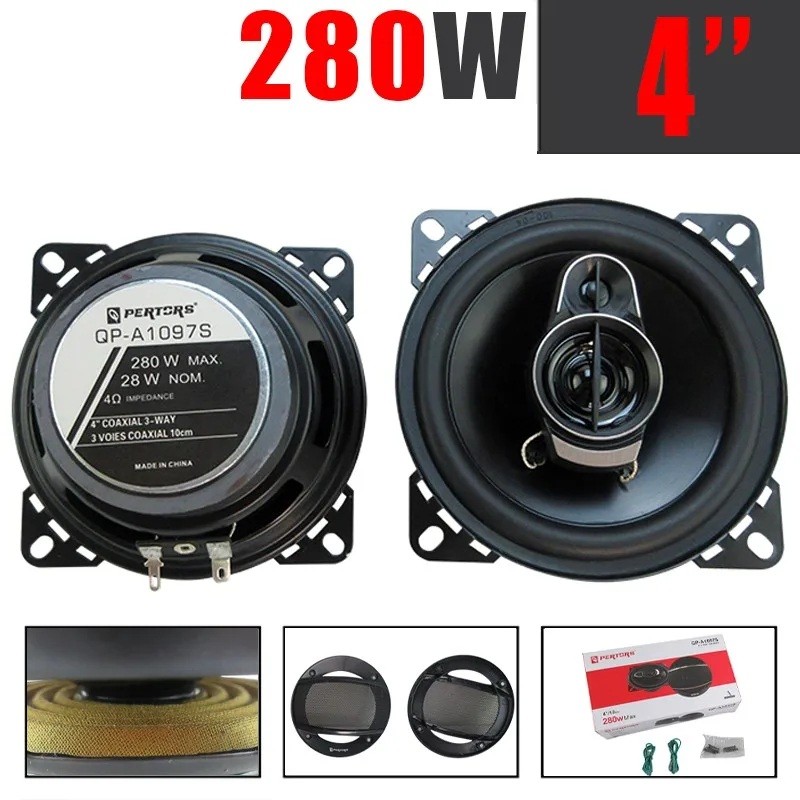 Zestaw 2 szt. Głośniki samochodowe 10 cm 3-drożne koaksjalne 4 Ω 560 W max 12–24 V Czułość 92 dB Siatki