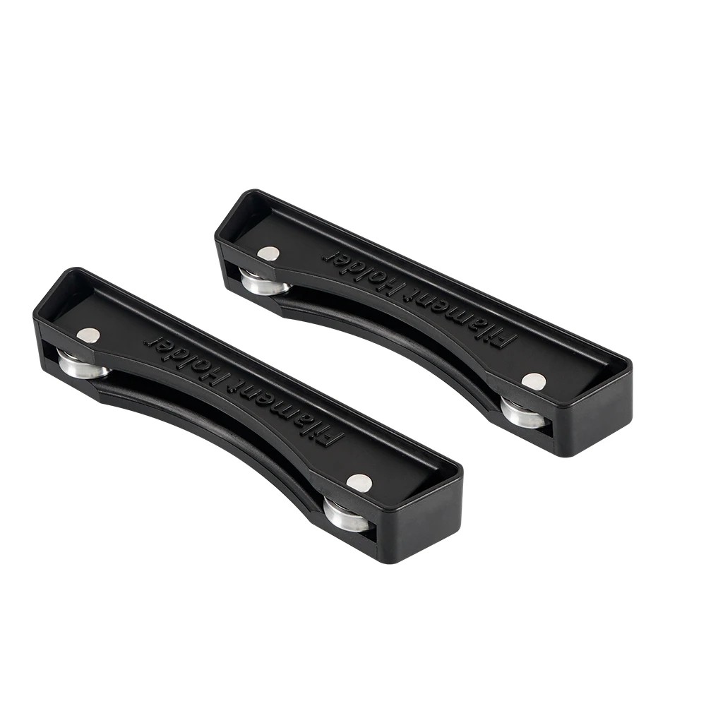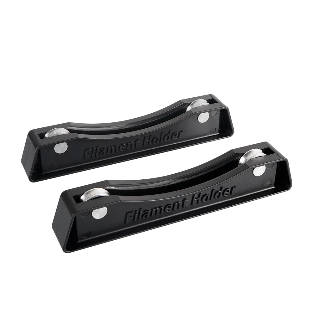 Taki zestaw dwóch uchwytów na cewki filamentu został zaprojektowany do stabilnego, płynnego i cichego rozwijania materiału podczas druku. Każdy uchwyt ma wymiary 165 × 30,6 × 23,9 mm i jest wyposażony w metalowe łożyska, które zapewniają płynny ruch bez zacinania. Specjalny zakrzywiony profil bezpiecznie utrzymuje cewkę na miejscu i zapobiega jej bocznemu przesuwaniu nawet przy wysokich prędkościach druku. Dzięki podkładce antypoślizgowej na dolnej stronie uchwyt pewnie siedzi na stole, nie wymagając przy tym mocowania śrubami ani zaciskami.