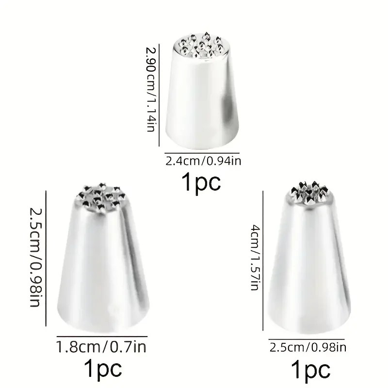 • Zestaw 3 różnych końcówek do szczegółowych dekoracji cukierniczych