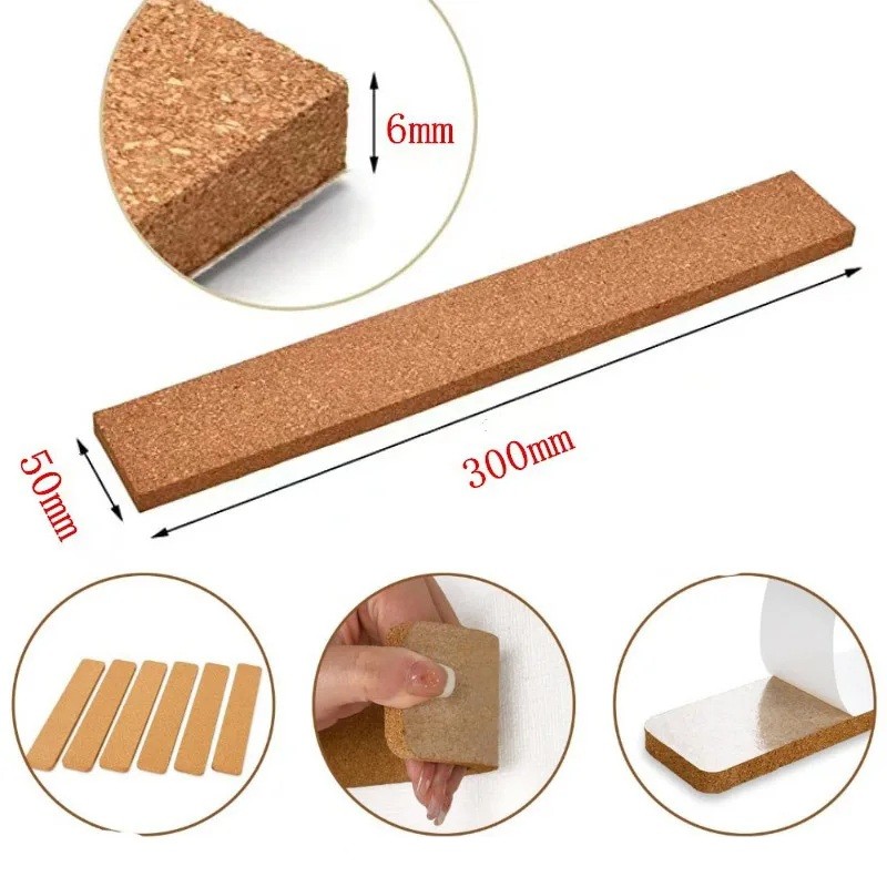 Zestaw korkowych pasków ściennych służy jako prosta tablica do przypinania notatek, zdjęć lub drobnych dokumentów. Dzięki wąskiemu kształtowi można umieścić pojedyncze paski samodzielnie lub połączyć je obok siebie, tworząc w ten sposób praktyczną powierzchnię do przypinania papierów.