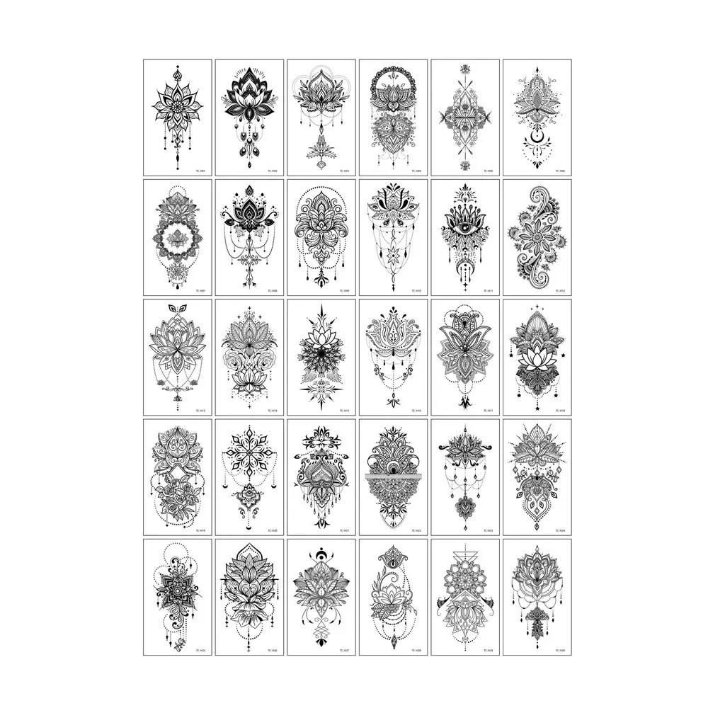 Zestaw 30 tymczasowych tatuaży 5,7 x 9,7 cm Motywy kwiatowe Czarnobiałe i kolorowe Wodoodporne tatuaże do ciała