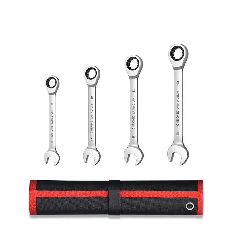 Zestaw 4 sztuk kluczy nasadowych Klucze kombinowane z grzechotką w solidnym czarno-czerwonym opakowaniu